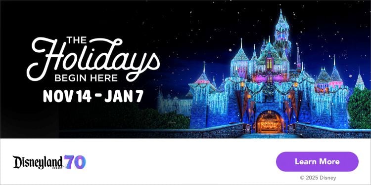 The holidays begin here at the Disneyland® Resort. From November 14, 2025, through January 7, 2026, the holiday spirit returns, with familiar wonder and joy intertwined with unforgettable moments of Disney magic. This is the place where traditions have been shared and memories made for seven happy decades—and now you can experience two great celebrations at one time during the Disneyland® Resort 70th Celebration.